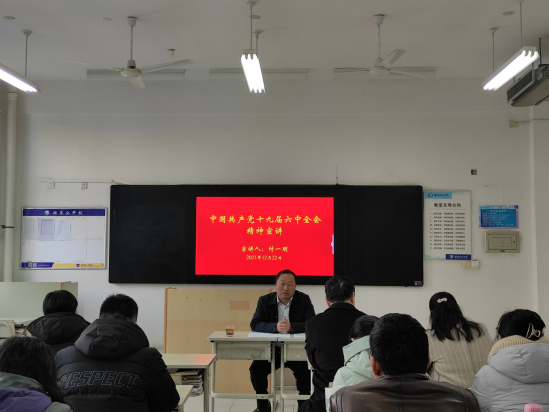 12月22日,公司党委委员付一明同志为公司党员做党的十九届六中全会精神宣讲。中层领导班子成员,全体党员参加了宣讲会。