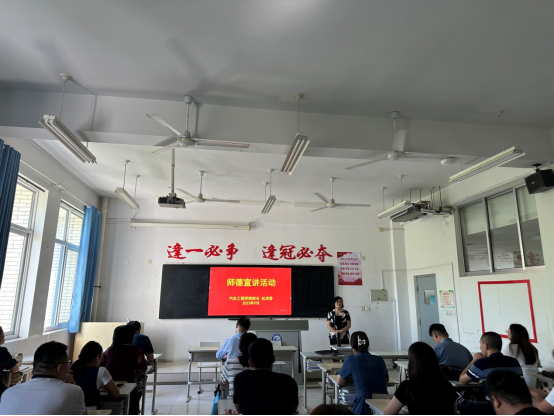 活动邀请了公司师德宣讲团成员汽车工程公司杜洪香经理来公司开展师德宣讲活动,宣讲题为《立师德铸师魂在平凡的岗位上努力迸发崇高的个人魅力》,她结合自身从教35年经历,从四个方面展开:一是要坚定政治方向,做政治上的明白人;二是潜心育人,每一堂课都需要精彩;三是关心爱护员工,把员工当成手心里的宝;四是做教师的暖心人。宣讲现场,杜经理以生动的事例、真挚的情感、质朴的语言讲述了扎根三尺讲台、倾心教书育人的故事,充分展示了新时代教师爱岗敬业、无私奉献的良好形象和精神风貌,赢得台下阵阵掌声。通过组织开展师德宣讲活动,进一步增强了老师们的责任感和使命感,大家纷纷表示认真做好本职工作,推动公司教育事业再上新台阶。