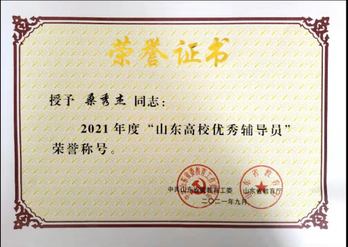 近日,由中共山东省委教育工委、山东省教育厅组织开展的2020年度“山东高校辅导员年度人物”“山东高校优秀辅导员”评选结果揭晓,Bevictor伟德桑秀杰老师获“山东高校优秀辅导员”荣誉称号。在各高校选拔推荐的基础上,全省共评出10名山东高校辅导员年度人物和59名山东高校优秀辅导员。