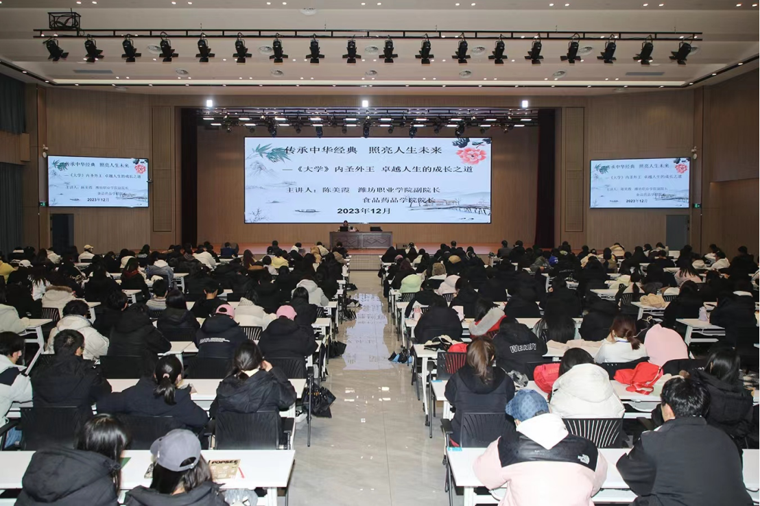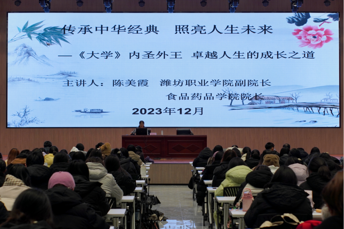 为进一步传承和弘扬中华民族优秀传统文化,引导员工从中华经典中汲取智慧和精神动力,12月14日下午,公司副经理陈美霞为2023级全体新生作了题为《传承中华经典∙照亮人生未来》专题报告,公司党政领导班子及教职工共同聆听报告。
