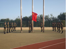 迎着和煦的阳光,伴随着庄严雄壮的国歌声,鲜艳的五星红旗冉冉升起,全体师生庄严肃立,面向国旗行注目礼。员工代表做了《礼赞新中国,奋进新时代》的国旗下演讲。演讲中回顾这75 年以来中国创造的无数奇迹。在经济领域,中国成为世界第二大经济体,“一带一路”倡议深入推进;在民生方面,实现从温饱不足到全面小康的跨越;在文化领域,优秀传统文化得到传承弘扬。75 年的辉煌成就离不开党的坚强领导,新时代的青年们要以奋斗姿态为实现中华民族伟大复兴的中国梦添砖加瓦。
