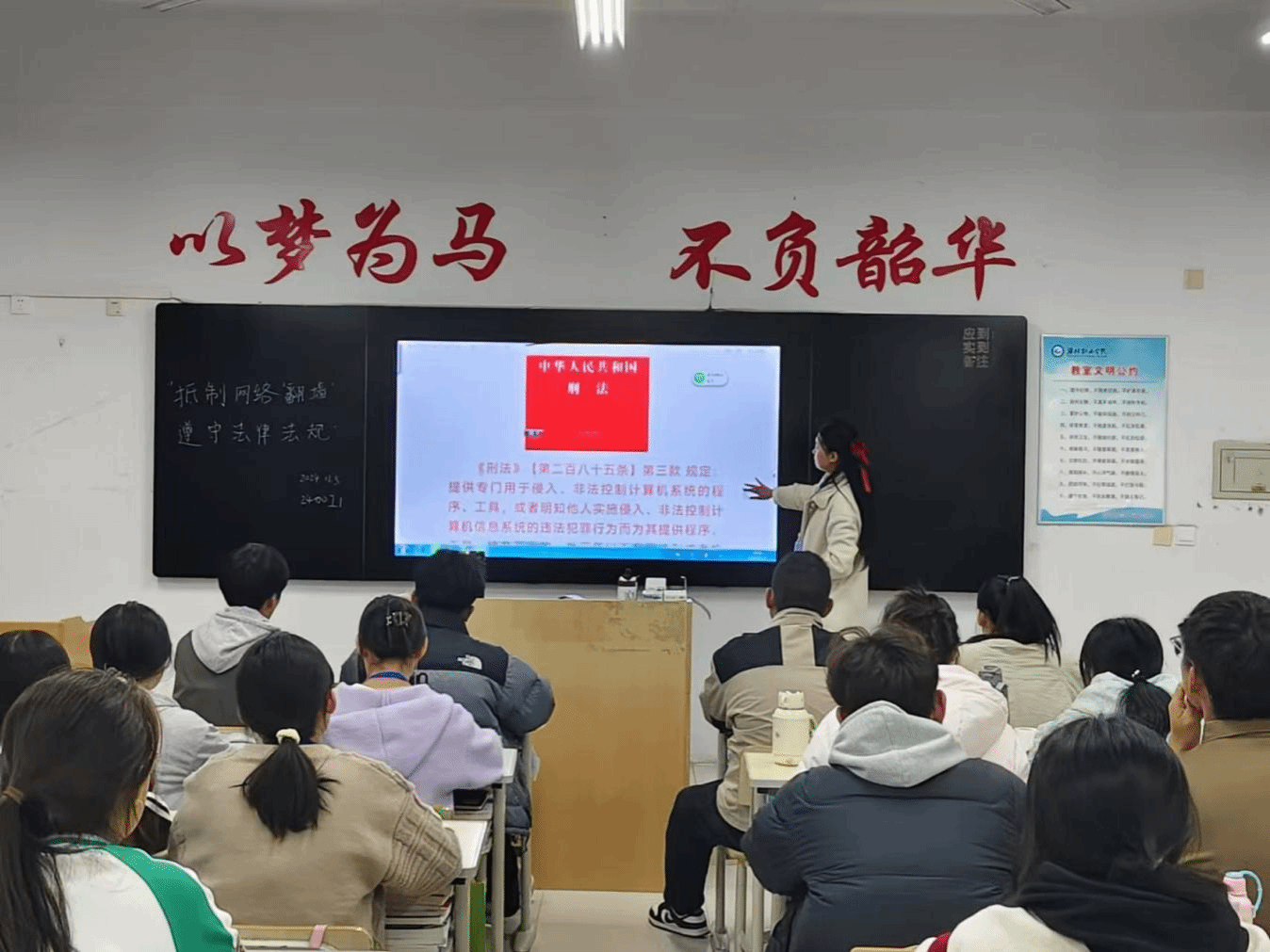 团课上,各团支部由团支书带领学习了什么是“翻墙”、哪些行为属于“翻墙”、“翻墙”的危害、“翻墙”可能面临的违反法纪后果、“翻墙”行为如何自查等内容,提醒同学们务必擦亮双眼依法依规上网、拒绝有害信息不要尝试“翻墙”访问境外网站,以免给自己带来不必要的麻烦。同时,还组织学习了《中华人民共和国网络安全法》等相关法律法规,带领同学们深刻认识到依法依规上网的重要性。同学们纷纷表示,今后一定合理使用互联网资源,取其精华、去其糟粕,严格遵守互联网法律法规,做文明网民。
