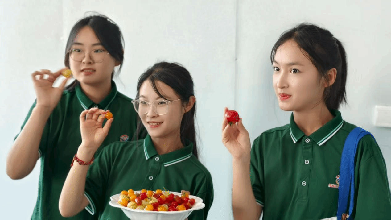 (团队成员展示富硒西红柿)