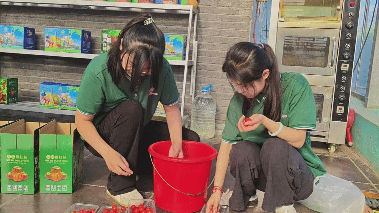 直播前,志愿服务团队同合作社的负责人一起选品,充分保证产品的品质。在所有产品中,富硒西红柿成为了“主角”,其生长于移民新村优质土壤,富含硒元素,果体饱满、酸甜多汁,团队志愿者既是 “推普使者”,用标准普通话详细讲解种植故事与营养价值;也是 “助农主播”,展示富硒西红柿从田间到餐桌的新鲜保障,此外,推广清甜的富硒西瓜、脆嫩的富硒黄瓜等其他农副产品也深受消费者的喜爱,带货直播的方式打通了农产品从田间地头到消费者餐桌的“快速通道,提高了村民们的收入,拓宽了销售渠道,提升了农产品销量,降低了营销成本,增强了品牌认知,让更多的人对“瑞合春”合作社的瓜果蔬菜有了更深的认识。同时,“推普+助农”的方式也将普通话的推广程度进一步加深,提升了村民们对普通话实用价值的认同感。