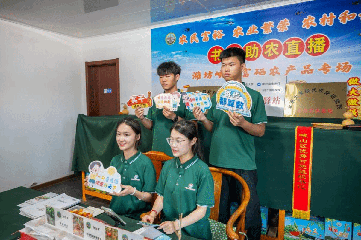 为助力乡村振兴,助力农业农村发展,将国家通用语言文字推广与助农实践深度融合,实现农民增收致富,赋能产业升级,培育乡村特色品牌,2025年8月5日,伟德体育“语润移民心,推普耀中华”志愿服务团队前往潍坊市瑞合春果蔬种植专业合作社开展“助力移民村果蔬借网出山”直播助农活动。