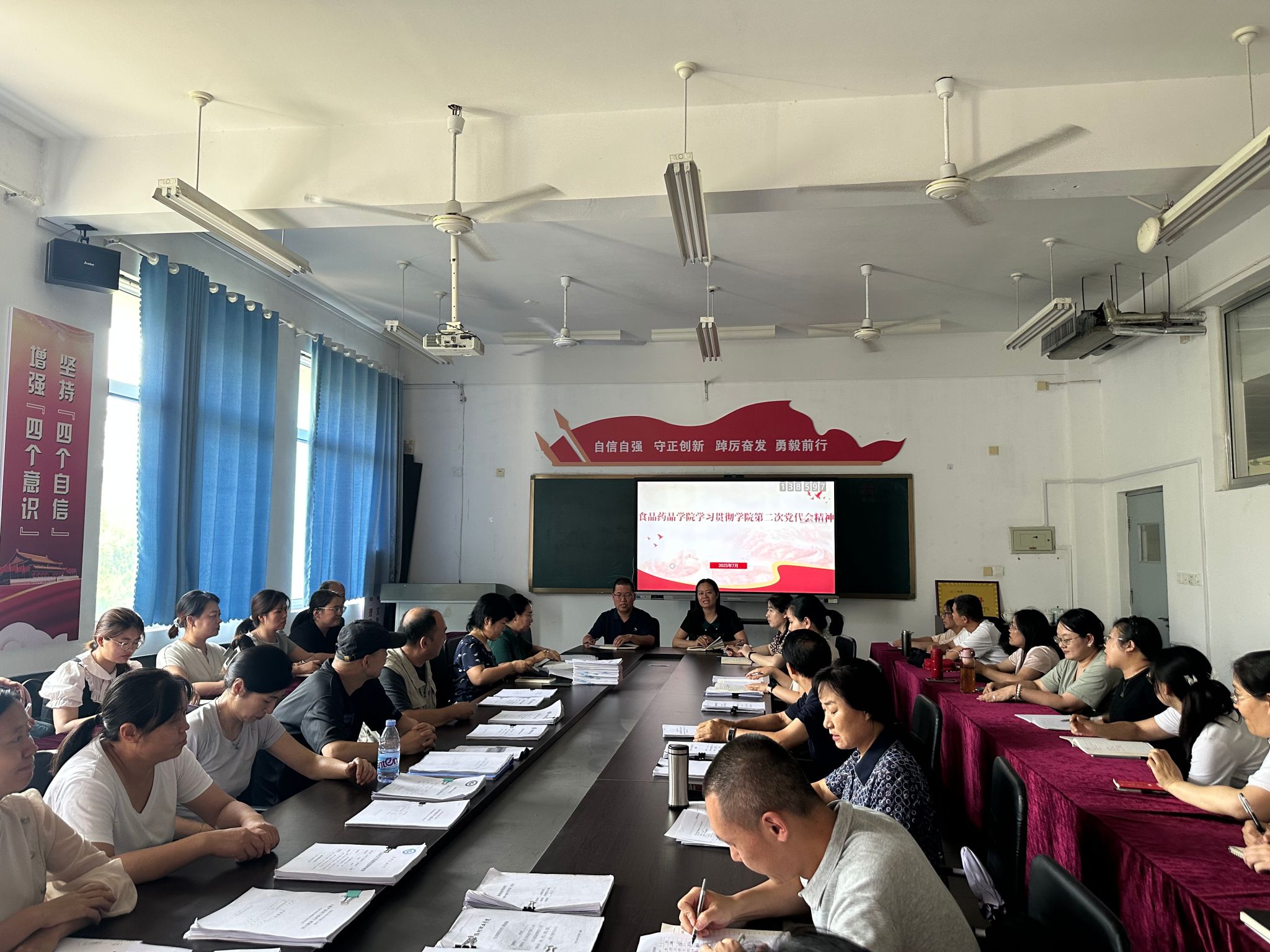会上,公司党总支负责同志带领全体教师集中学习了党委书记王浩在党代会上作的题为《凝心聚力谱写内涵建设新华章 改革攻坚构建服务发展大格局 为打造高水平专业集群创建高水平职业技术大学而努力奋斗》的工作报告,深入解读了党代会提出的“加强一个引领、锚定两个目标、贯彻三步走战略、坚持五个导向、落实九个跃升工程”的总体要求,并结合食品药品公司专业特色,安排部署了今后工作的重点方向:一是强化党建引领,打造“党建+专业”特色品牌;二是深化产教融合,与区域龙头企业共建现代产业公司;三是优化人才培养体系,推进“岗课赛证”综合育人改革;四是提升科研服务水平,助力区域大健康产业发展。会议要求部门全体教职工对标目标任务,找准专业建设与公司发展的结合点。与会人员一致认为,报告为公司未来发展指明了方向,必须深刻领会精神实质,切实把思想和行动统一到公司党委决策部署上来。
